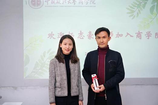 接下来,由财务会计系主任夏宁教授详细介绍了新入职教师杨志豪的教育背景、学术成果,以及实践经历等方面的情况,并寄予了殷切的期望与真挚的祝福。他提到,杨志豪老师不仅深耕科研领域,成果丰硕,而且自入职以来,始终对工作满怀热忱,秉持兢兢业业的严谨作风,彰显了敬业本色,并期待杨志豪老师在未来教书育人的道路上行稳而致远。
